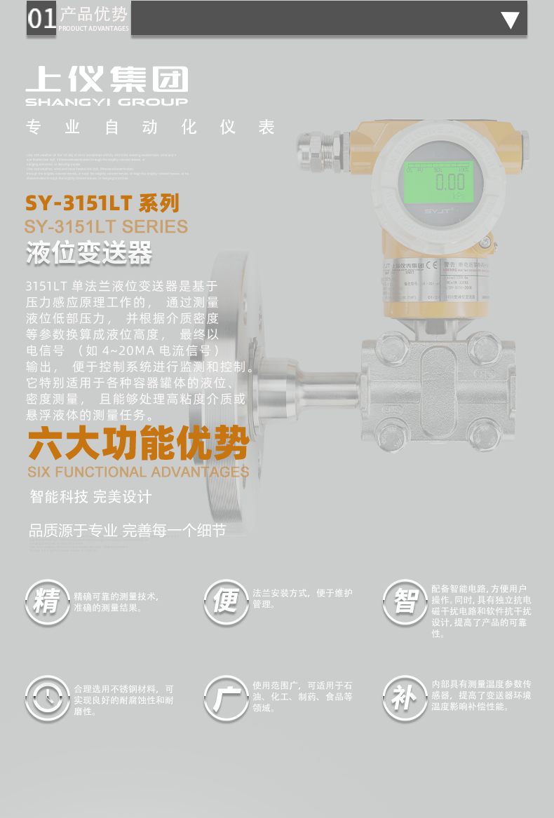 3151LT係列單法蘭液位(wèi)變送器是一種在工(gōng)業自(zì)動化(huà)*域中(zhōng)廣泛應用的設備,主要用於測量和轉換液體、氣體或蒸汽的液位或壓力信號為標準的電信(xìn)號輸出。以下是關於3151LT係列單法蘭液位變(biàn)送器的詳細介紹: