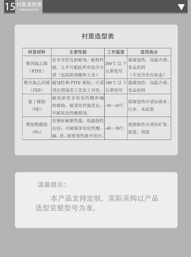 選型表