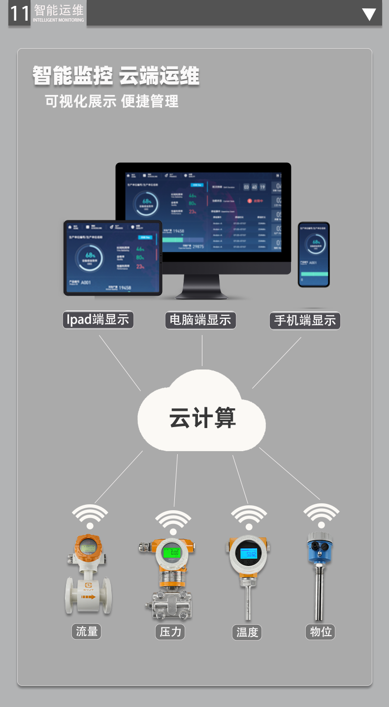 采用微處理器控製,具有自動換算單位、自動修正零點漂移、自(zì)動識別空管(guǎn)/滿管等智能功能。