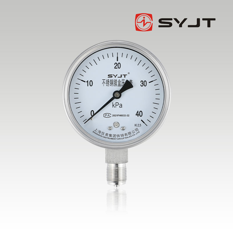 不鏽鋼膜盒壓力表是一種精密的測量儀器,主要用於石油、化工、冶金等工業部門以及科研*域中對氣體或液(yè)體介質壓力的測量。以下是關於不(bú)鏽鋼(gāng)膜盒壓力表的詳細介紹: