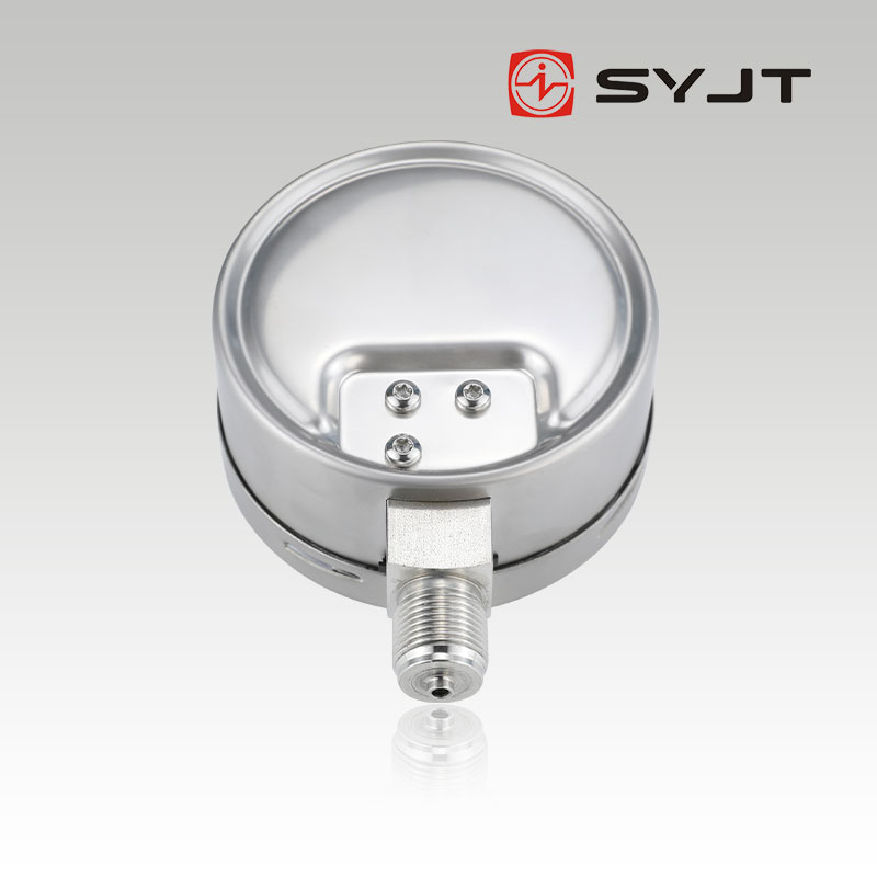 www91ncom集團YE-100BF 不(bú)鏽鋼膜盒(hé)壓力表,廣泛用於石油、化工、化纖、冶金、電站等工業部門中對耐腐、抗振有較(jiào)高要求(qiú)的工(gōng)藝流程中測(cè)量各種流體介質的壓力。