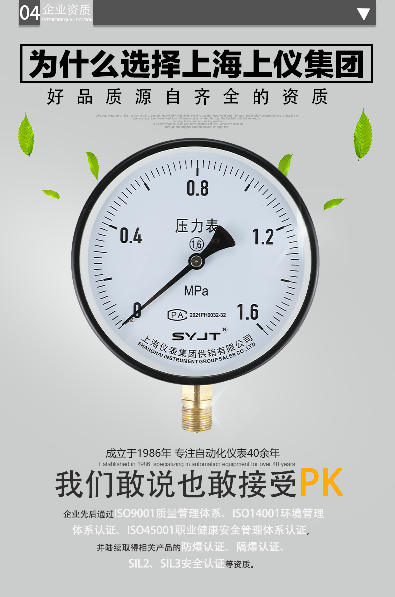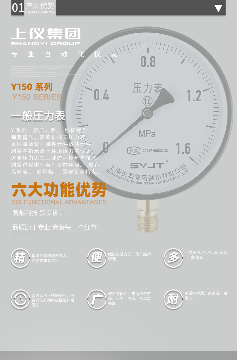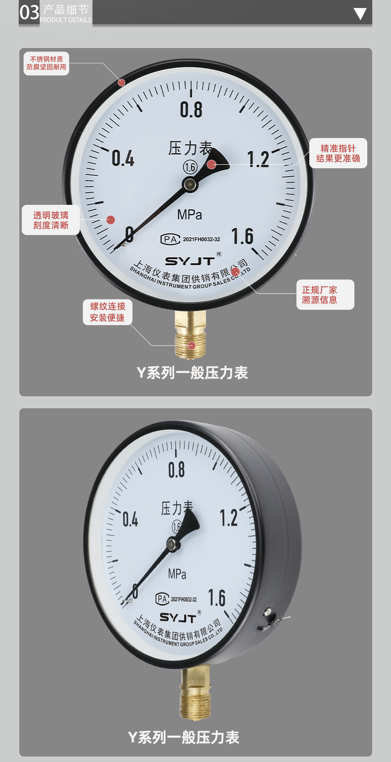 總結(jié):普通壓力表(biǎo)是一種常見的(de)測量工具(jù),通過(guò)彈簧的彈性變形來感知壓力的大小。