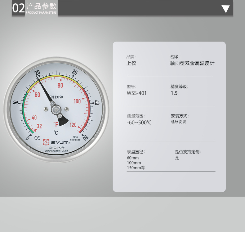 溫度計指示部分:(按溫度(dù)計(jì)標度盤的外徑表示)分φ60、φ100、φ150mm.