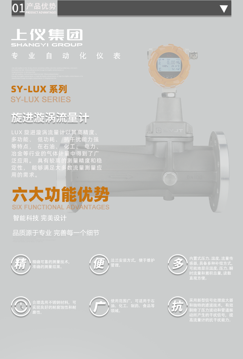 SY-LUX係列旋進漩渦流量計結構特點: